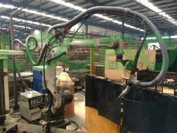 隨著先進制造技術的發(fā)展,實現(xiàn)焊接產(chǎn)品制作的自動化、柔性化和智能化已成為必然趨勢。目前,采用機器人焊接已成為焊接自動化技術現(xiàn)代化的主要標志。焊接機器人由于具有通用性強、工作可靠的優(yōu)點,受到了人們越來越多的重視。由于焊接機器人焊槍工作路徑為編程控制,根據(jù)工件不同其焊槍工作路徑不固定,且工作時焊槍行走跨度較大,使得焊接機器人的焊煙治理較為麻煩。