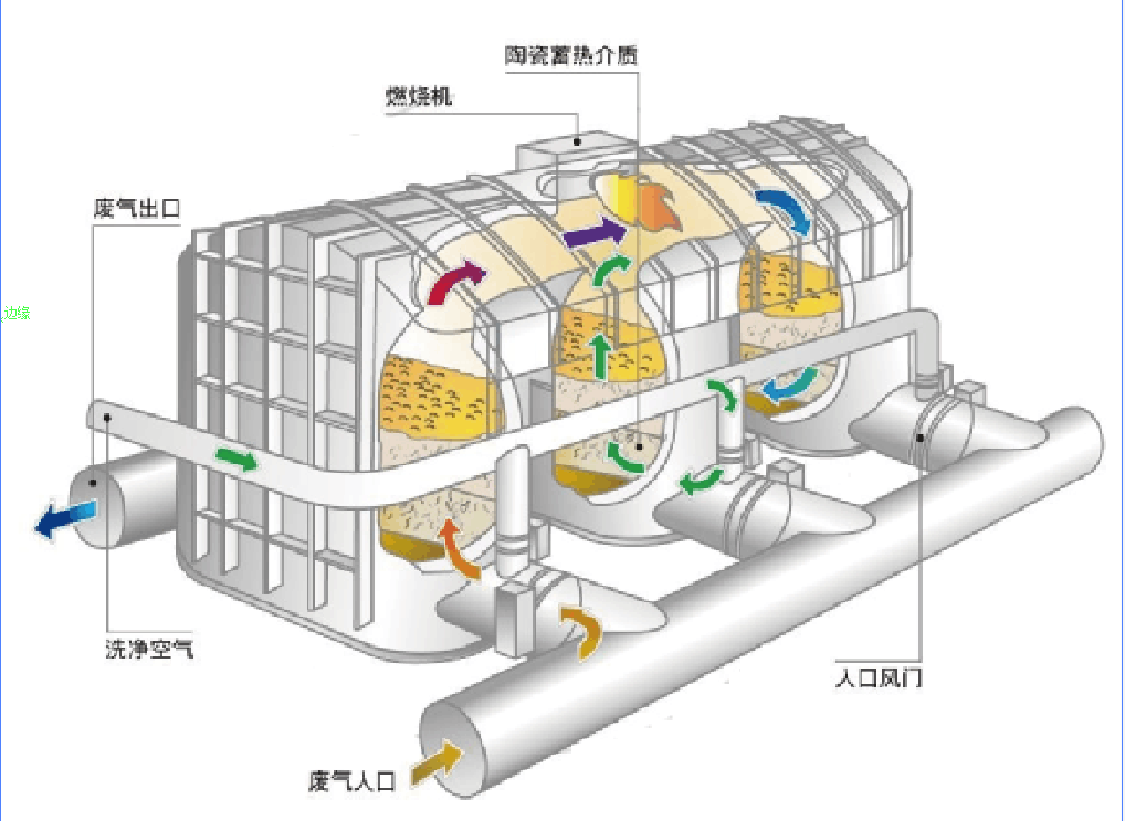 ????????????? 三床RTO的結(jié)構(gòu)示意圖 ? ? ? ? ? ? ? ? ? ? ? ? ? ? ? ? ? ? ???? ?? ? ? ? ????? 旋轉(zhuǎn)RTO