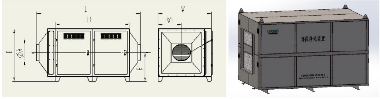工業(yè)廢氣利用排風(fēng)設(shè)備輸入到凈化設(shè)備后,凈化設(shè)備運(yùn)用高能UV紫外線光束及臭氧對(duì)工業(yè)廢氣進(jìn)行協(xié)同分解氧化反應(yīng),使工業(yè)廢氣降解轉(zhuǎn)化成低分子化合物、水和二氧化碳,再通過(guò)排風(fēng)管道排出室外。